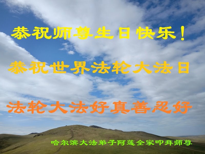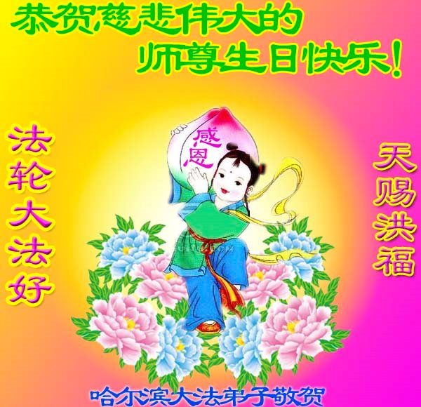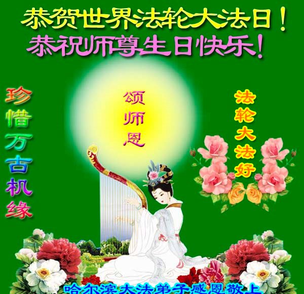 恭祝世界法轮大法日! 黑龙江省哈尔滨市大法弟子恭祝师父生日快乐!