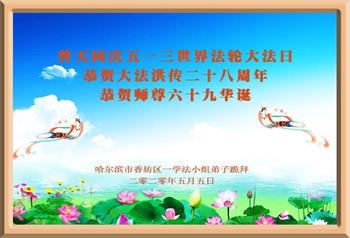 黑龙江省哈尔滨市大法弟子恭贺师尊华诞暨世界法轮大法日!