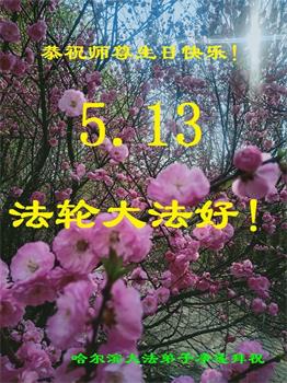 普天同庆五·一三世界法轮大法日! 弟子在此叩谢师尊救度之恩,在历史的最后关头,学好法,完成好救度众生的神圣使命。 哈尔滨市一学法小组大法弟子敬上 黑龙江省哈尔滨市大法弟子携全家恭祝慈悲伟大的师尊生日快乐!