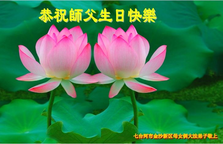黑龙江省七台河市金沙新区母女俩大法弟子恭祝师父生日快乐!