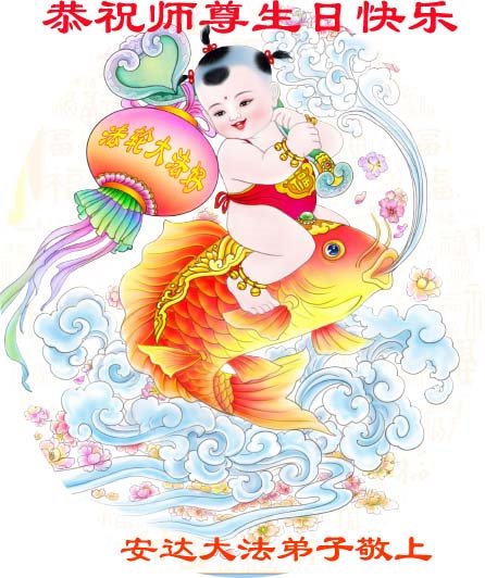 师尊艰辛传法度人二十八年 得度受益者亿万千 师尊慈悲呼唤仍有人信邪*党-谎言 瘟疫到世人已面临危险 师尊慈悲早已给人留救命真言 诚心相信敬念者能躲过瘟疫劫难 仍信邪*党-谎言者危险 师尊用巨大承受把时间一延再延 等待众生快醒悟蹬渡船 弟子尊师命助师救人兑誓言 喜迎师尊华诞世界法轮大法日 弟子感恩跪拜遥祝敬贺言 黑龙江双鸭山市宝清县二大法弟子及明真相家人恭祝慈悲伟大的师尊生日快乐!
