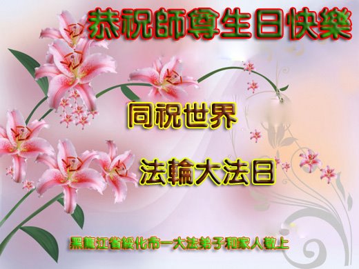 黑龙江省牡丹江市大法弟子恭祝师父生日快乐!祝贺世界法轮大法日!