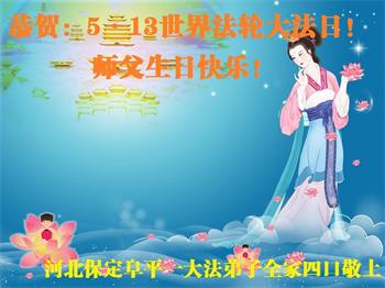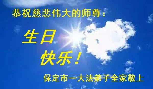 弟子盼望师尊早日归来! 河北保定市一大法弟子全家恭祝慈悲伟大的师尊生日快乐!