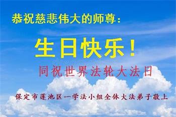 河北保定市莲池区一学法小组全体大法弟子恭祝师尊生日快乐!同祝世界法轮大法日!