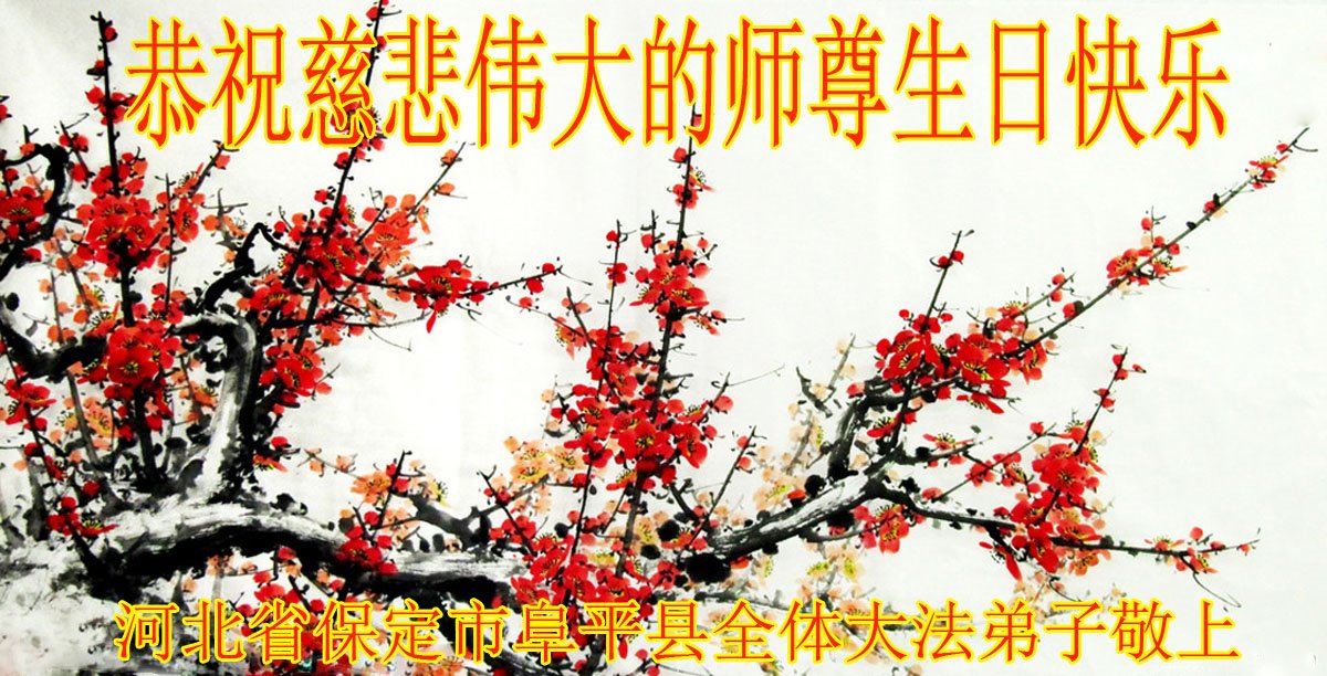 河北保定阜平县全体大法弟子恭祝师尊生日快乐!