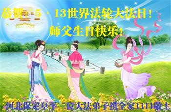 河北省保定市大法弟子恭祝师尊生日快乐!全球同贺世界法轮大法日!