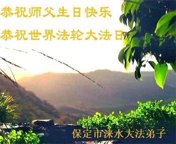河北省保定涞水大法弟子恭祝师父生日快乐!恭贺世界法轮大法日!