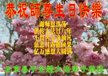 北京市昌平区全体大法弟子恭祝慈悲伟大的师尊生日快乐!