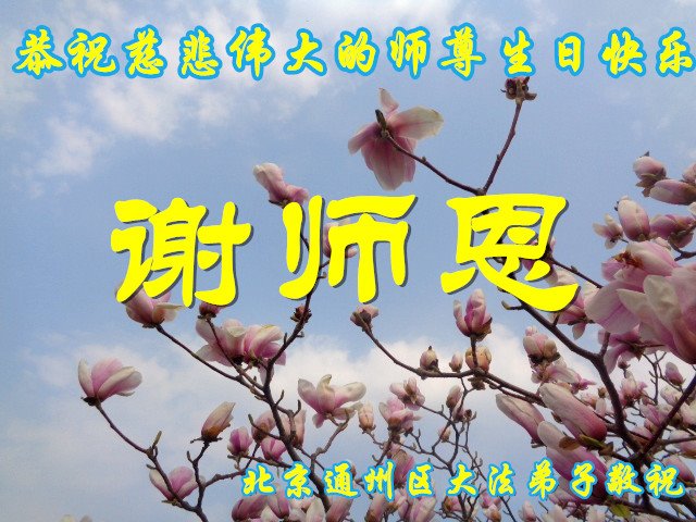 北京通州区大法弟子恭祝慈悲伟大的师尊生日快乐!恭贺世界法轮大法日!