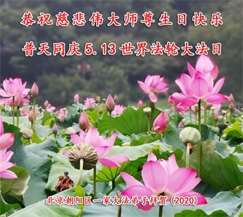 【明慧网二零二零年五月十二日】 北京昌平区大法弟子恭祝慈悲伟大的师尊生日快乐!恭贺世界法轮大法日!