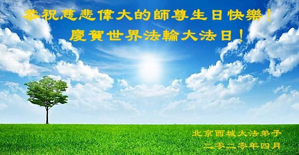 2020年又一年的法轮大法日到了。2020天象巨变,寰宇更新,人间除恶,天地复明在即,我们期待着世间早日归正,恭迎期盼伟大的师尊早日回国。在此,我恭祝师尊法轮大法日节日快乐!北京海淀一大法弟子敬上 北京市昌平区全体大法弟子恭祝慈悲伟大的师尊生日快乐!
