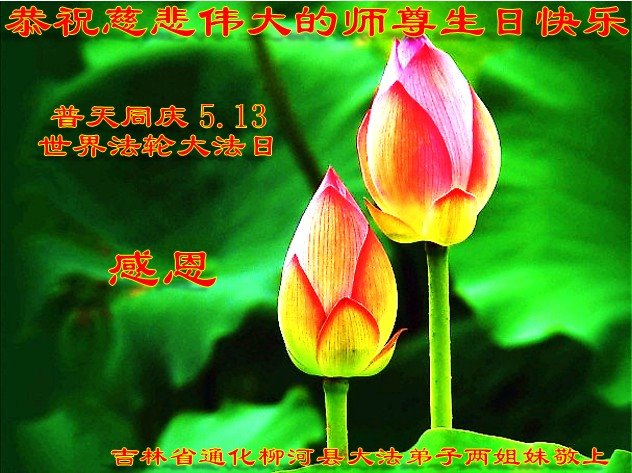 吉林省通化柳河县大法弟子两姐妹恭祝慈悲伟大的师尊生日快乐!同庆5.13世界法轮大法日!