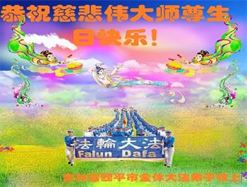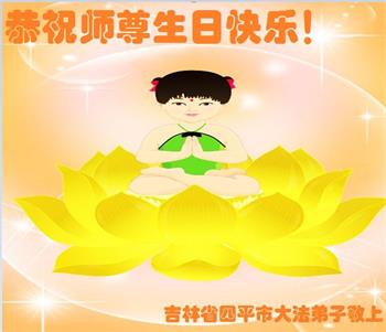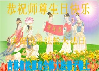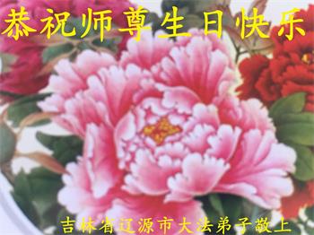 吉林省辽源市大法弟子敬祝师父生日快乐!恭祝世界法轮大法日!