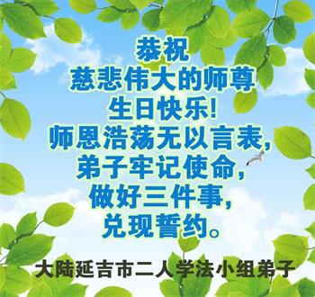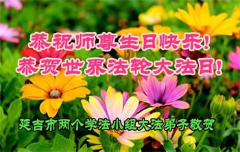 吉林省延边州延吉市两个学法小组大法弟子恭祝师尊华诞暨世界法轮大法日!