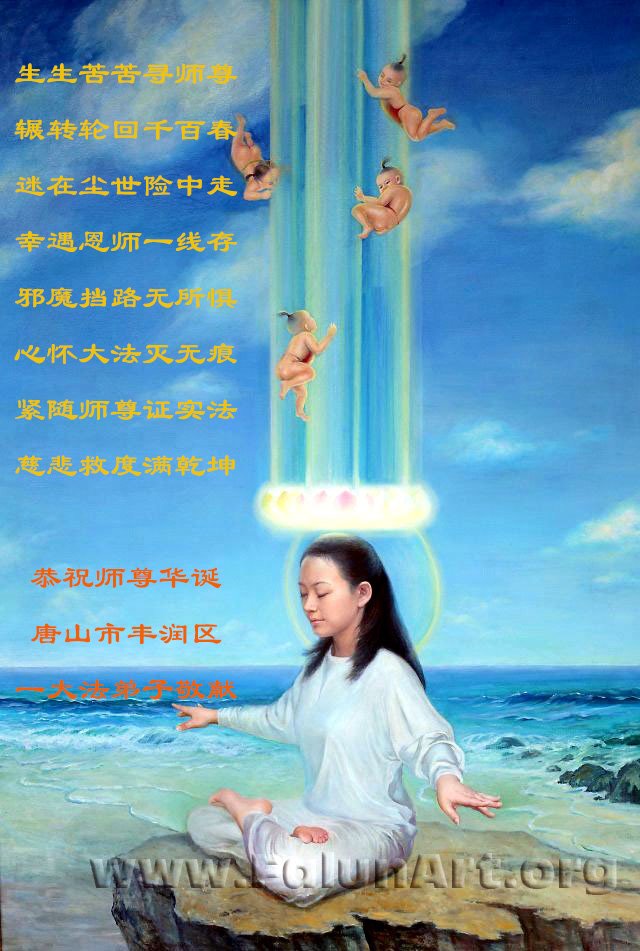 生生苦苦寻师尊 辗转轮回千百春 迷在尘世险中走 幸遇师尊一线存 邪魔挡路无所惧 心怀大法灭无痕 紧随师尊证实法 慈悲救度满乾坤 河北省唐山市丰润区一大法弟子敬献 河北省唐山市丰润区沙流河村一学法小组大法弟子恭祝师父华诞暨世界法轮大法日!
