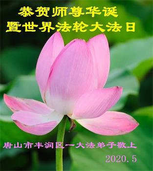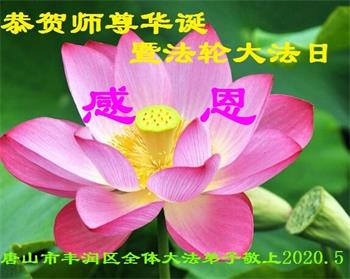 普天同颂师洪恩,同庆同贺大法日, 弟子不负史前愿,更当精進不退转。 中共病毒疫如火,谎言乱象毁众生, 险中救人是使命,无私无我正觉神。 唐山市丰润区一大法弟子敬上 20204月28日 河北省唐山市丰润区全体大法弟子恭祝师尊华诞!恭贺世界法轮大法日!