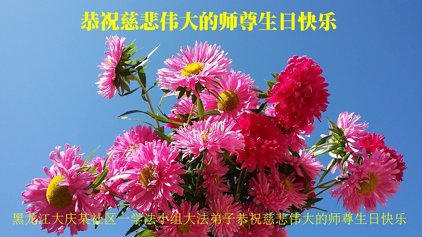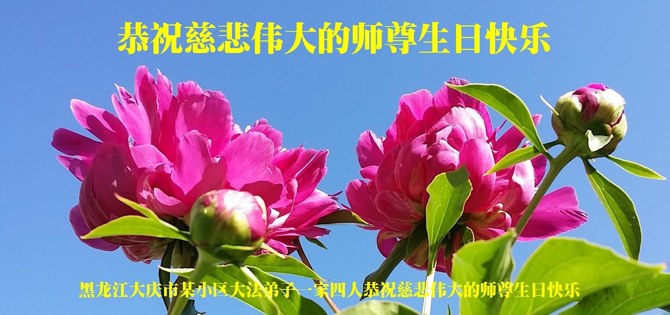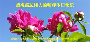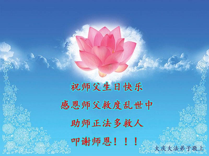 【明慧网二零二零年五月十二日】 黑龙江省大庆新村一大法弟子恭祝慈悲伟大的师尊生日快乐!