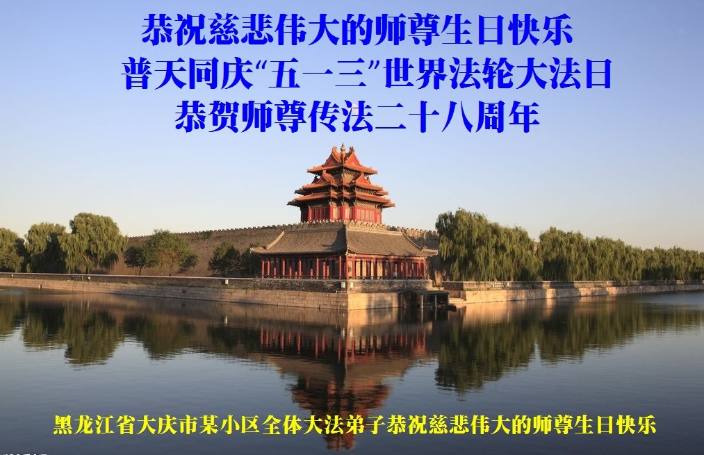 普天同庆“五一三”世界法轮大法日! 恭祝师尊传法二十八周年! 黑龙江省大庆市某小区一夫妻大法弟子恭祝慈悲伟大的师尊生日快乐!
