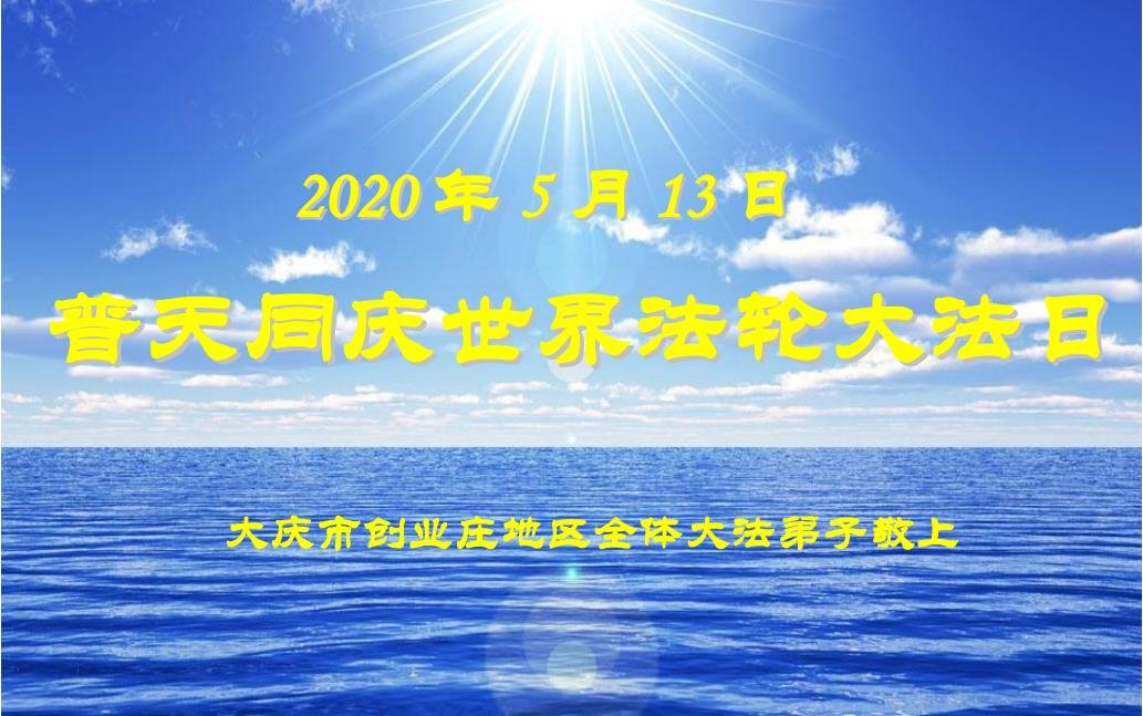 恭庆5.13世界法轮大法日! 黑龙江大庆一学法小组大法弟子恭庆5.13世界法轮大法日!恭祝慈悲伟大的师尊生日快乐!恭贺法轮大法洪传二十八周年!普天同庆同祝同颂! 黑龙江省大庆市萨尔图区大法弟子恭祝慈悲伟大的师父生日快乐!