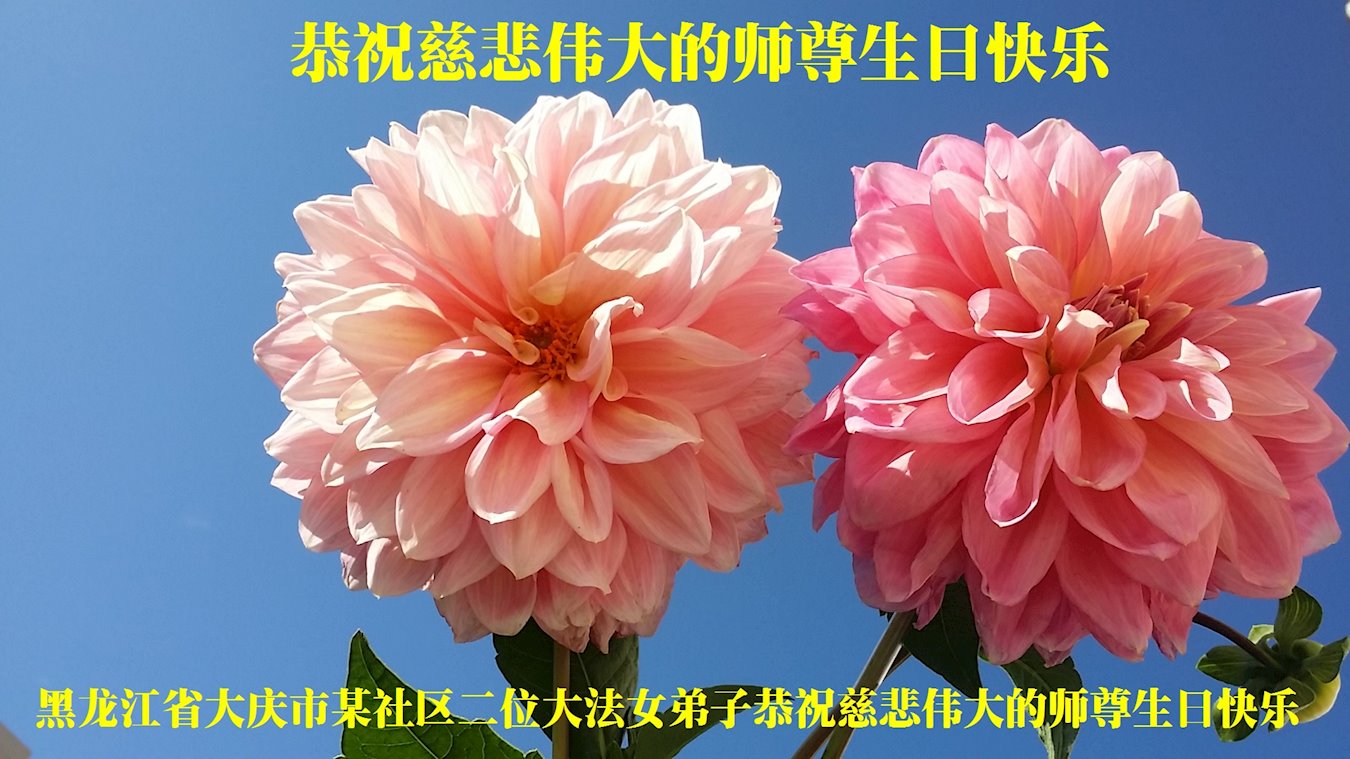 黑龙江省大庆市创业庄全体大法弟子敬上 2020年4月29日 黑龙江省大庆市某社区二位大法女弟子恭祝慈悲伟大的师尊生日快乐!