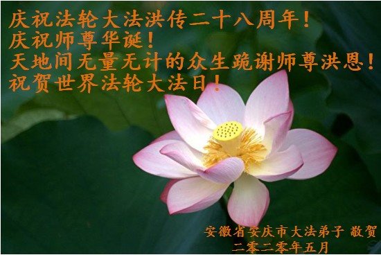 【明慧网二零二零年五月十二日】 安徽安庆大法弟子恭贺世界法轮大法日暨师尊华诞!