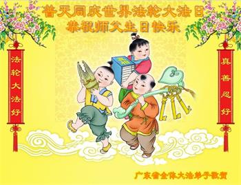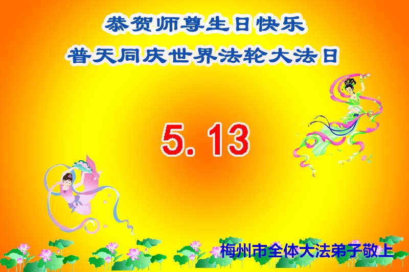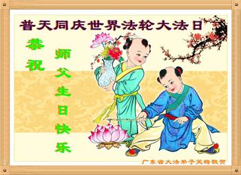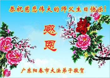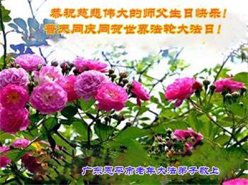 恭祝慈悲伟大的师父生日快乐! 在广东中山的大法弟子敬上 广东省韩江溪墘五户大法弟子恭贺世界法轮大法日暨师尊华诞!