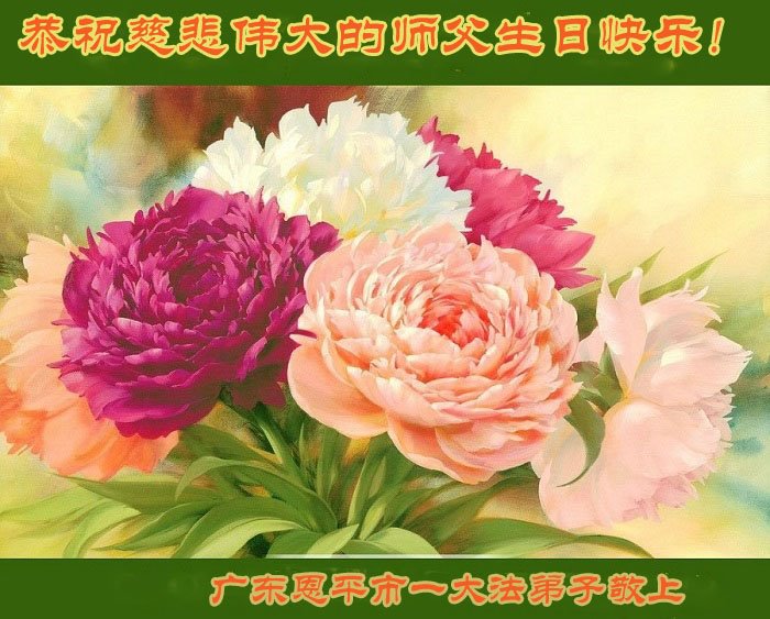 弟子坚定跟着师父走,决心走好以后的路! 汕头一家族大法弟子敬上 广东省佛山市全体大法弟子恭祝师父生日快乐!