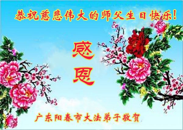 弟子们偕家人拜谢师尊慈悲苦度!弟子们一定珍惜这万古不遇的修炼机缘,做好三件事,担当起大法弟子的责任。 广东省阳江市大法弟子恭祝师尊生日快乐!