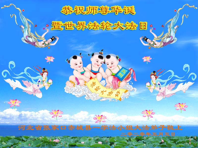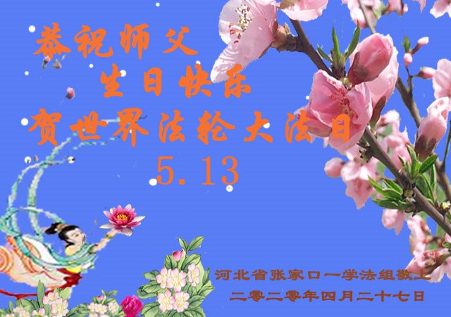 【明慧网二零二零年五月十二日】 河北省张家口市一学法小组大法弟子恭祝师尊生日愉快!