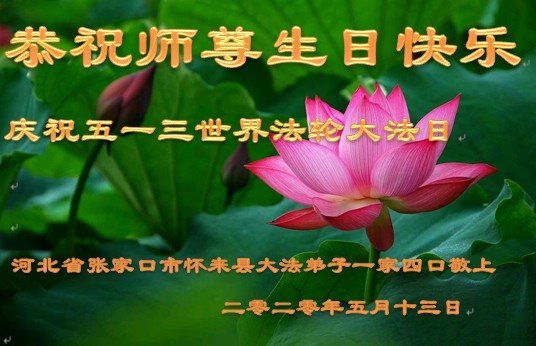 河北省张家口市怀来县一大法弟子恭祝师尊生日快乐!庆祝五一三世界法轮大法日! 河北省张家口市怀安县一大法弟子携家人恭祝慈悲伟大的师尊生日快乐!