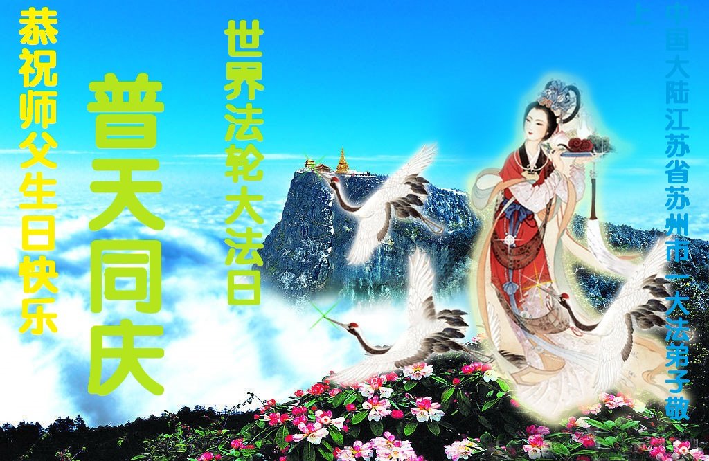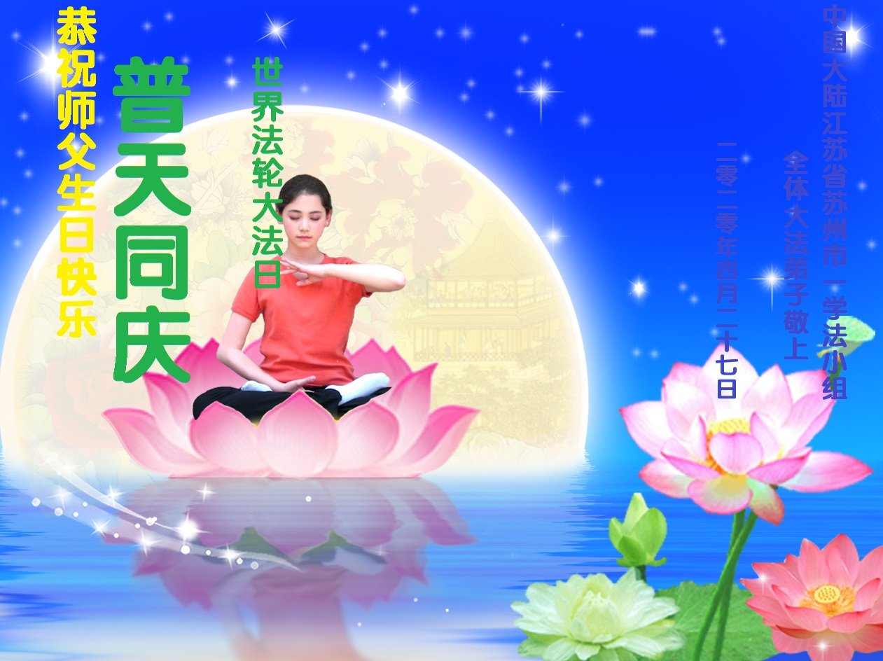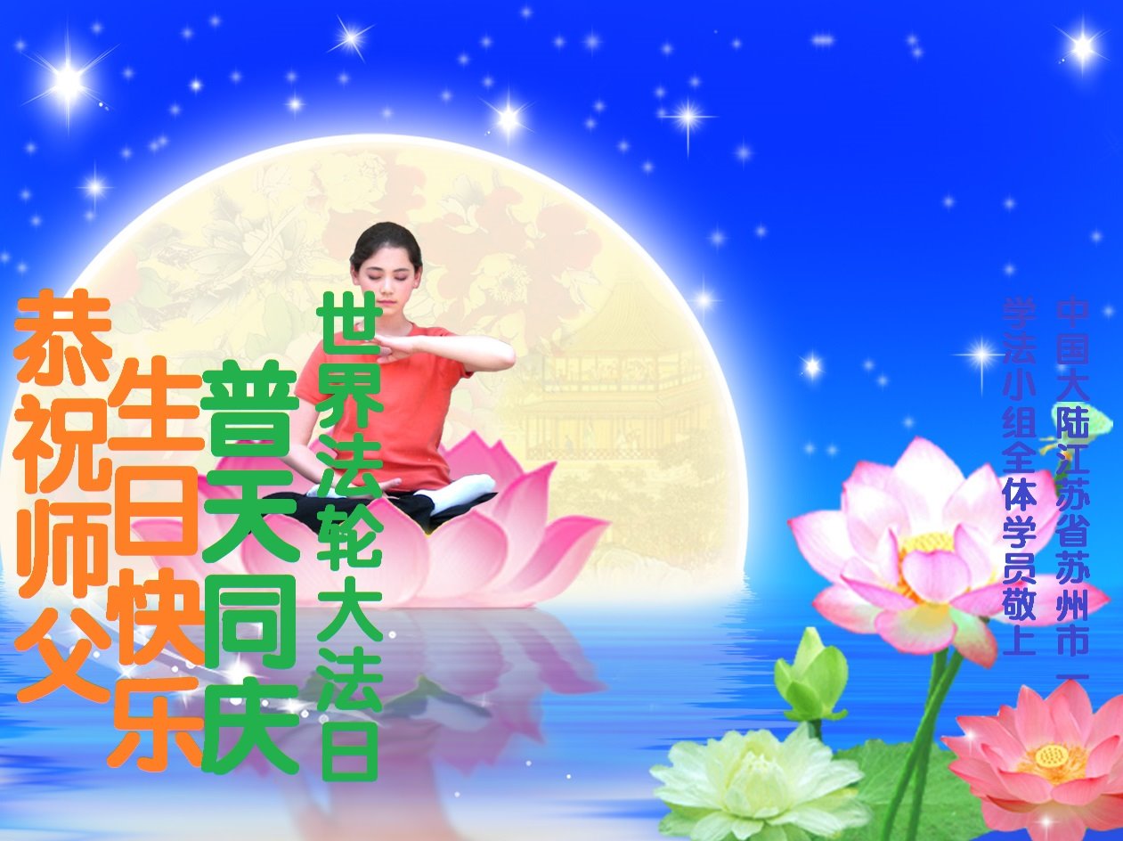 江苏省苏州市一学法小组全体大法弟子恭贺世界法轮大法日暨师父华诞! 江苏省苏州市一大法弟子恭贺世界法轮大法日!