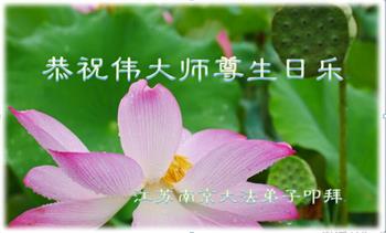 江苏南京大法弟子恭祝伟大师尊生日快乐!