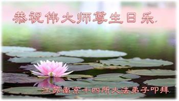 江苏南京十四所大法弟子恭祝伟大师尊生日快乐!