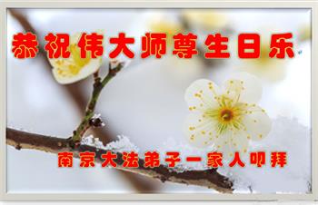 江苏南京市一大法弟子携家人恭祝伟大的师父生日快乐!