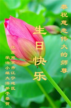 江苏南京市江宁地区学法小组大法弟子恭祝慈悲伟大的师尊生日快乐!