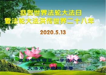 辽宁省沈阳市铁西区一学法小组大法弟子恭贺世界法轮大法日!
