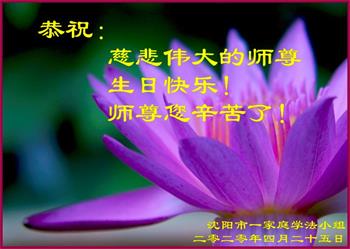 辽宁省沈阳市一家庭学法小组大法弟子恭祝慈悲伟大的师尊生日快乐!