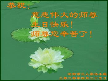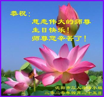 辽宁省沈阳市三人学法小组大法弟子恭祝慈悲伟大的师尊生日快乐!