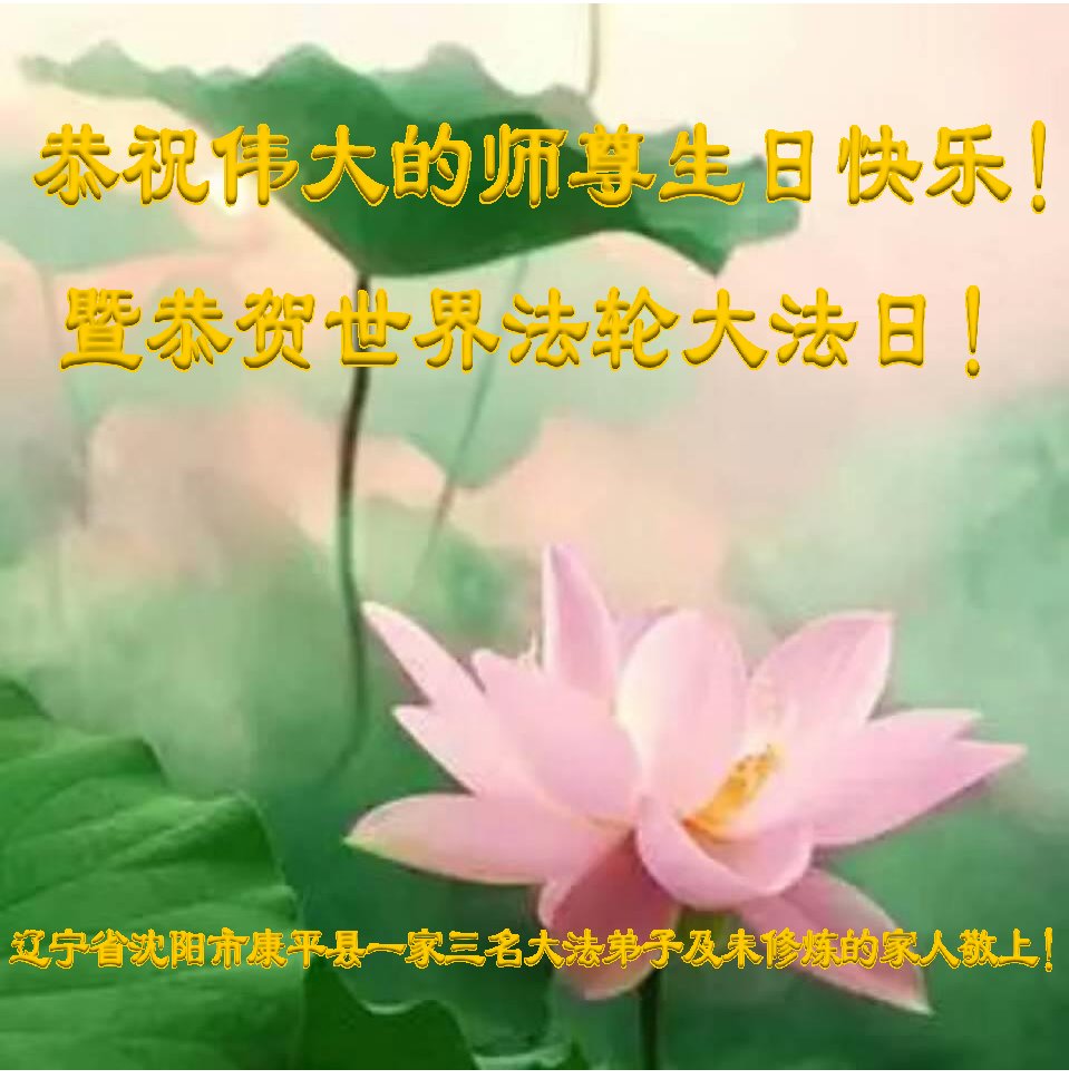 恭贺世界法轮大法日! 叩谢伟大师尊的慈悲救度!弟子们一定珍惜最后有限的时间,修好自己,多救人!唯愿师尊笑! 辽宁省沈阳市康平县一家三名大法弟子及家人恭祝伟大的师尊生日快乐!