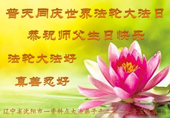 【明慧网二零二零年五月十二日】 辽宁省沈阳大法弟子恭贺世界法轮大法日!