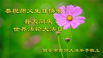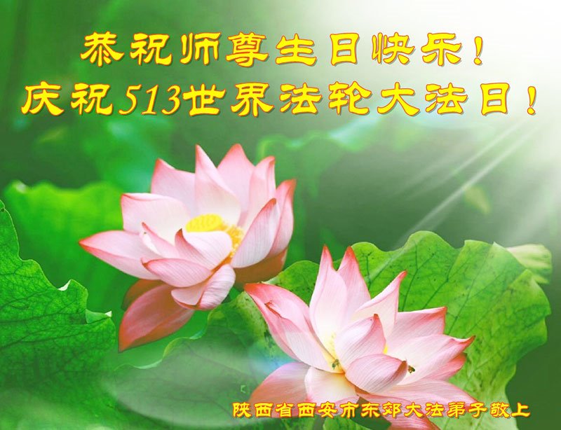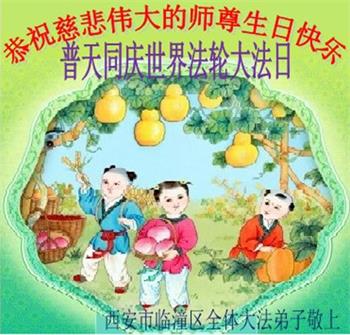 陕西省西安市临潼区大法弟子恭祝慈悲的师父生日快乐!同庆世界法轮大法日!