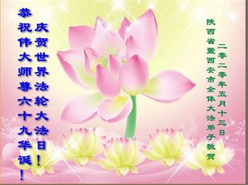 陕西省暨西安市全体大法弟子恭祝伟大师尊六十九华诞!庆贺世界法轮大法日!