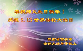 陕西省西安市大法弟子恭祝师父生日快乐!暨庆祝世界法轮大法日!