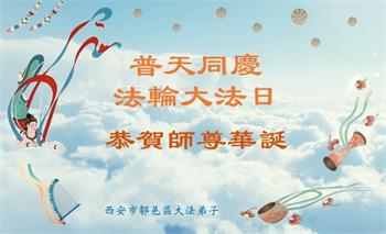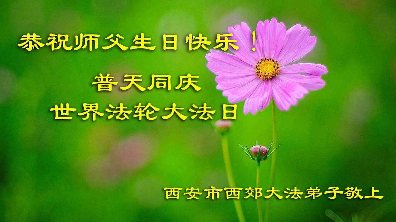 陕西省西安市西郊大法弟子恭祝师父生日快乐!暨庆祝世界法轮大法日!