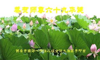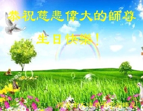 陕西省西安大法弟子恭祝慈悲伟大的师尊生日快乐!