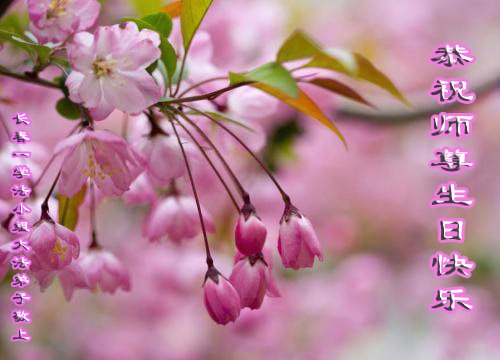 恭祝慈悲伟大的师父生日快乐!叩首合十,谢师恩:感恩您洪大慈悲与救度之恩!师父您辛苦了!谢谢您为拯救全宇宙众生所做的一切。谢师恩 朵朵鲜花竞相放 频频贺师尊 普天同庆庆华诞 大法弟子谢师恩 长春一大法弟子敬上 二零二零年五月四日 吉林省长春一学法小组大法弟子恭祝师尊生日快乐!