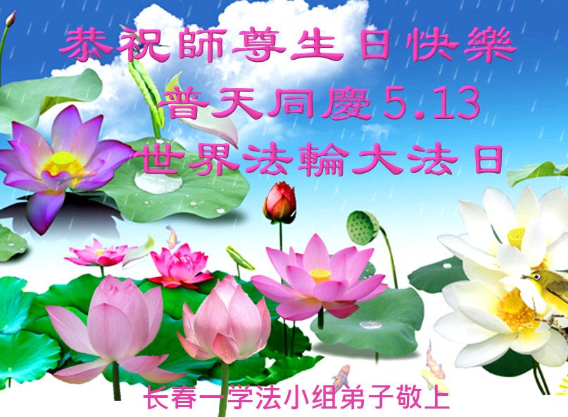 【明慧网二零二零年五月十二日】 吉林省长春朝阳区一学法小组全体大法弟子恭祝慈悲伟大的师父生日快乐!