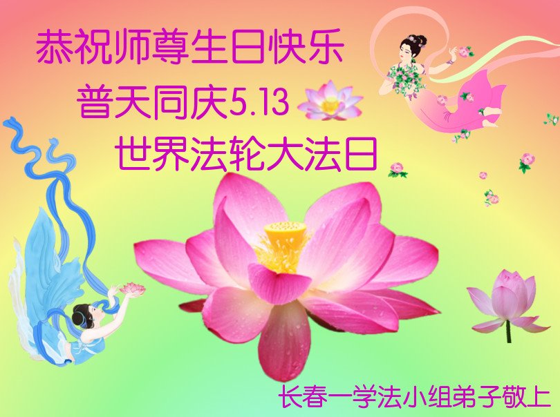 吉林省长春一老年学法组大法弟子恭祝师尊华诞暨世界法轮大法日!感谢师尊救度之恩!