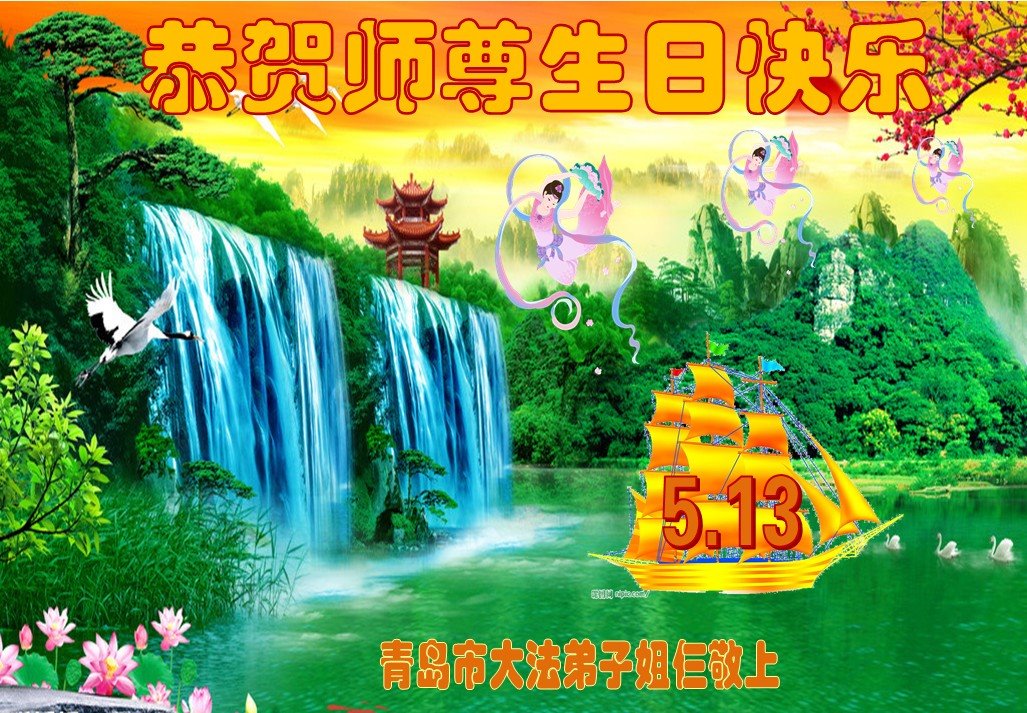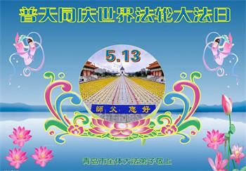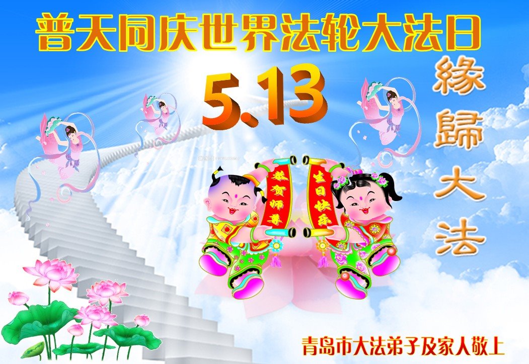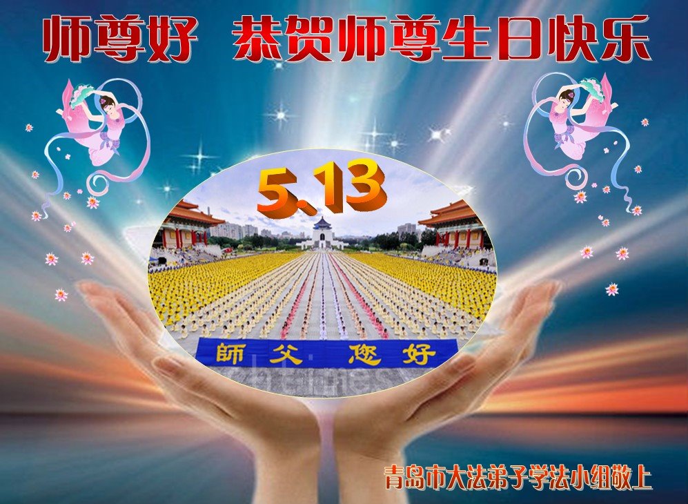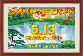 山东省青岛市大法学员恭祝慈悲伟大的师尊生日快乐!祝贺第二十一届世界法轮大法日!