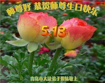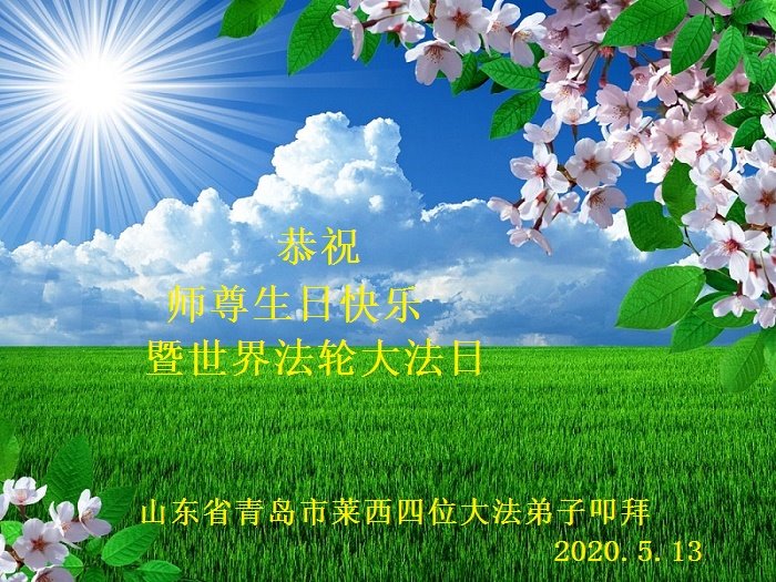 【明慧网二零二零年五月十二日】 山东省青岛市城阳区流亭一学法小组大法弟子恭祝师尊生日快乐!